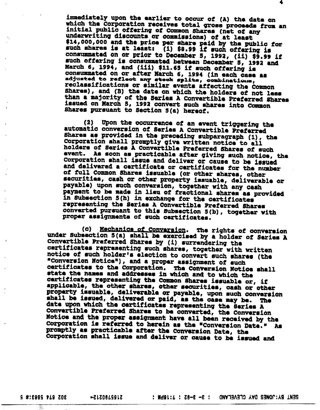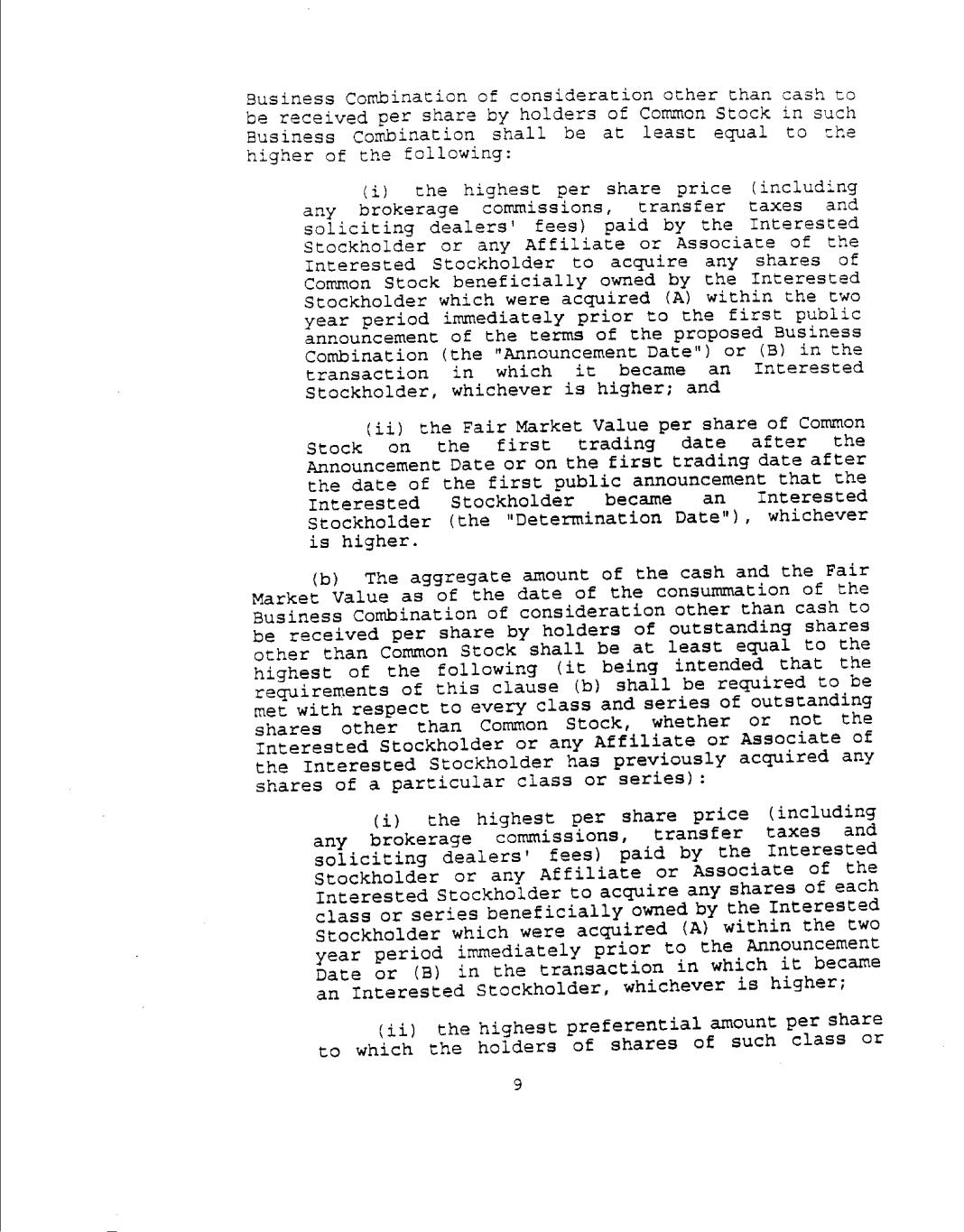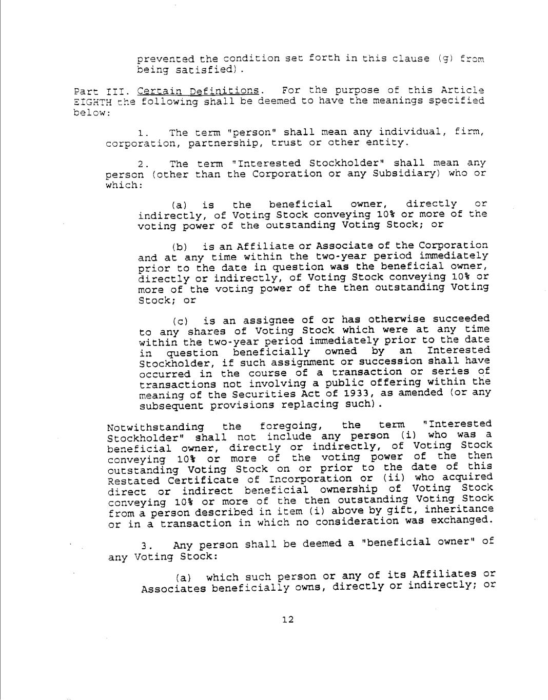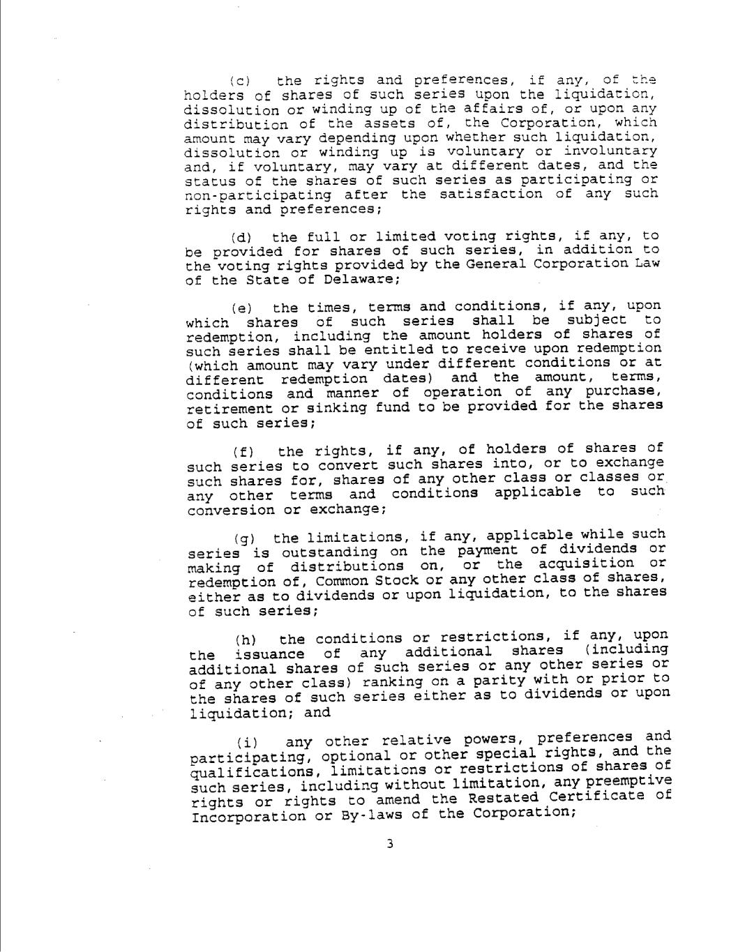 | 4.1 | Article Eighth of our Restated Certificate of Incorporation, as amended, contains certain provisions restricting business combinations with interested stockholders under certain circumstances and imposing higher voting requirements for the approval of certain transactions unless the transaction has been approved by two-thirds of the disinterested directors or fair price provisions have been met. (incorporated by reference to Exhibit 3.3 to the Company's Annual Report on Form 10-K for the year ended December 31, 1995 filed on April 1, 1996 (File No. 0-21044)) (paper file) |