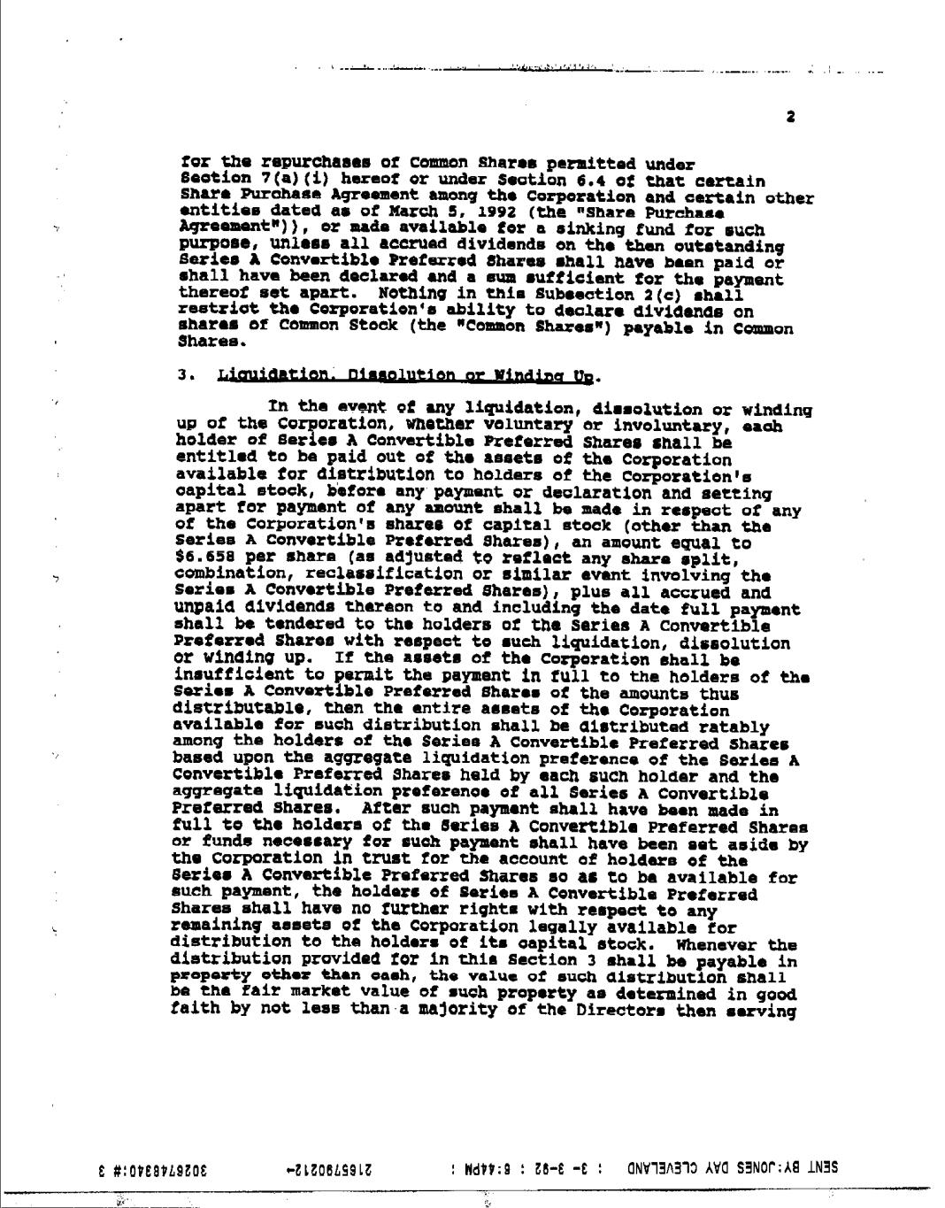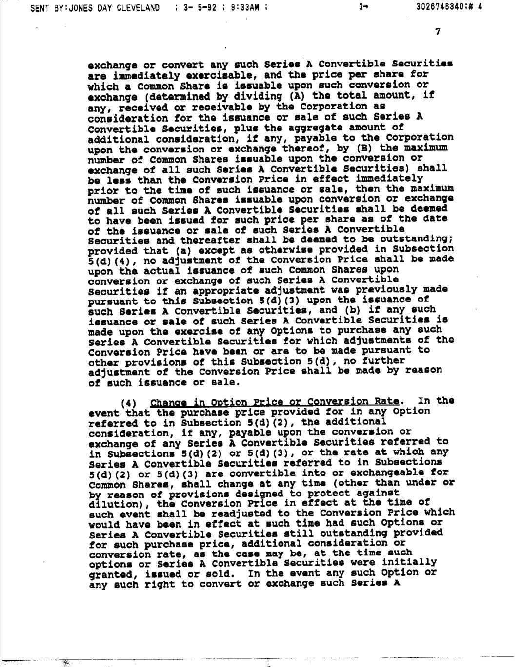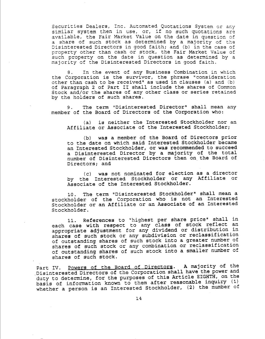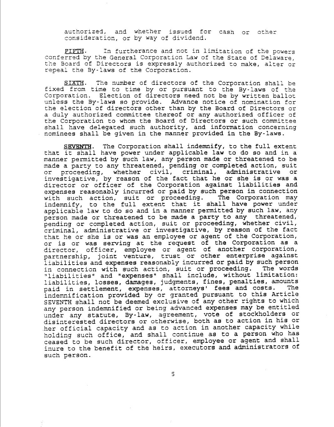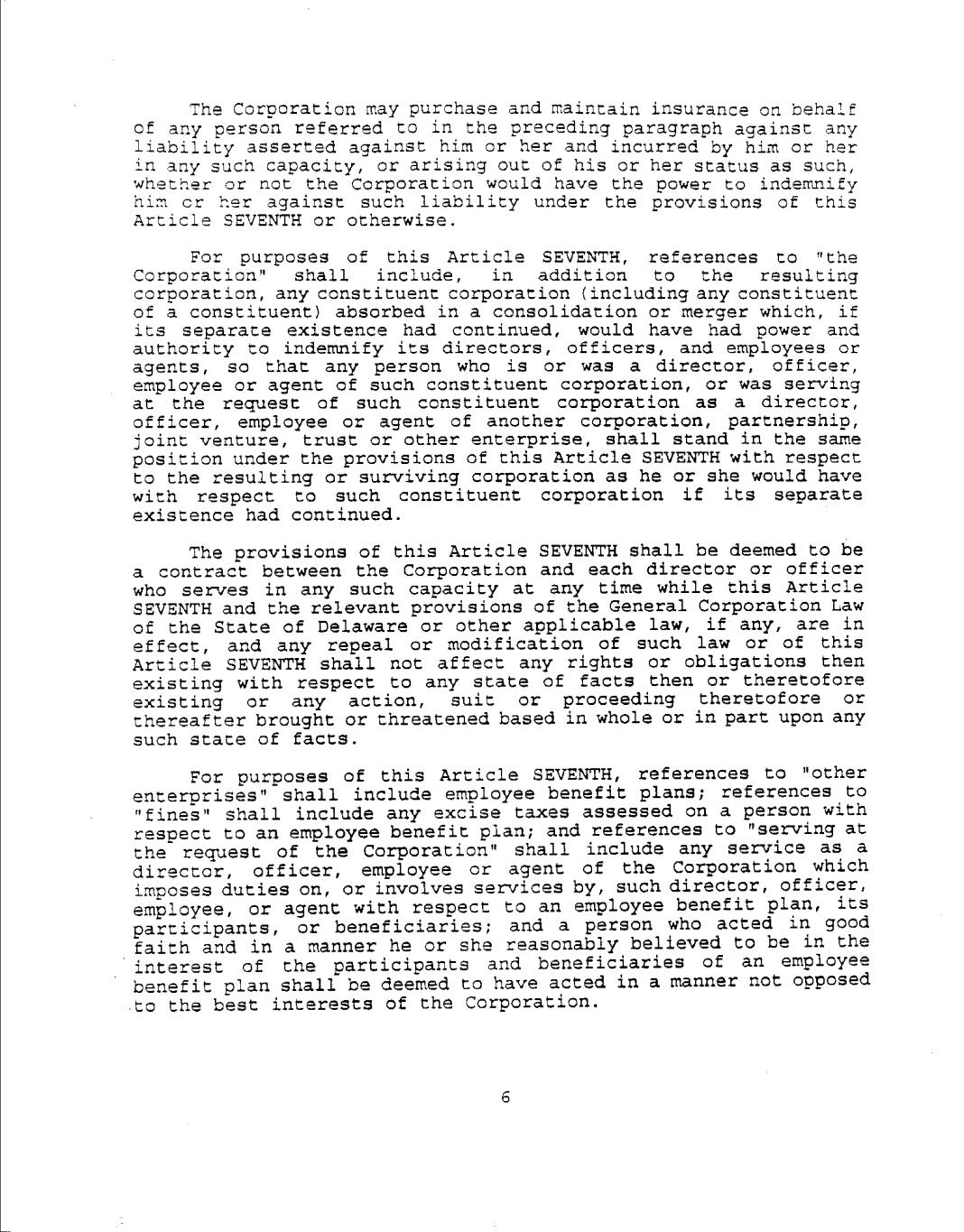 | 4.1 | Article Eighth of our Restated Certificate of Incorporation, as amended, contains certain provisions restricting business combinations with interested stockholders under certain circumstances and imposing higher voting requirements for the approval of certain transactions unless the transaction has been approved by two-thirds of the disinterested directors or fair price provisions have been met. (incorporated by reference to Exhibit 3.3 to the Company's Annual Report on Form 10-K for the year ended December 31, 1995 filed on April 1, 1996 (File No. 0-21044)) (paper file) |