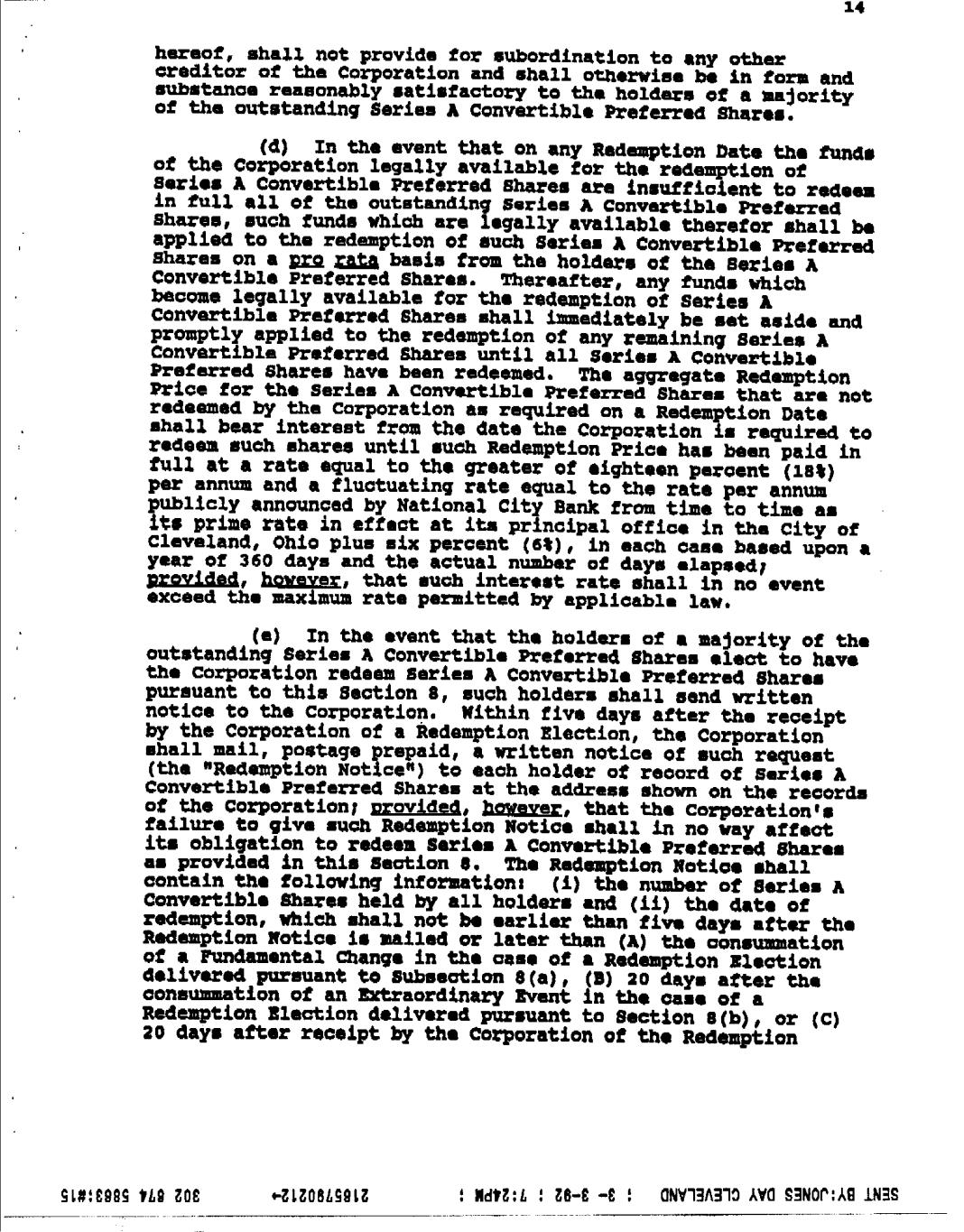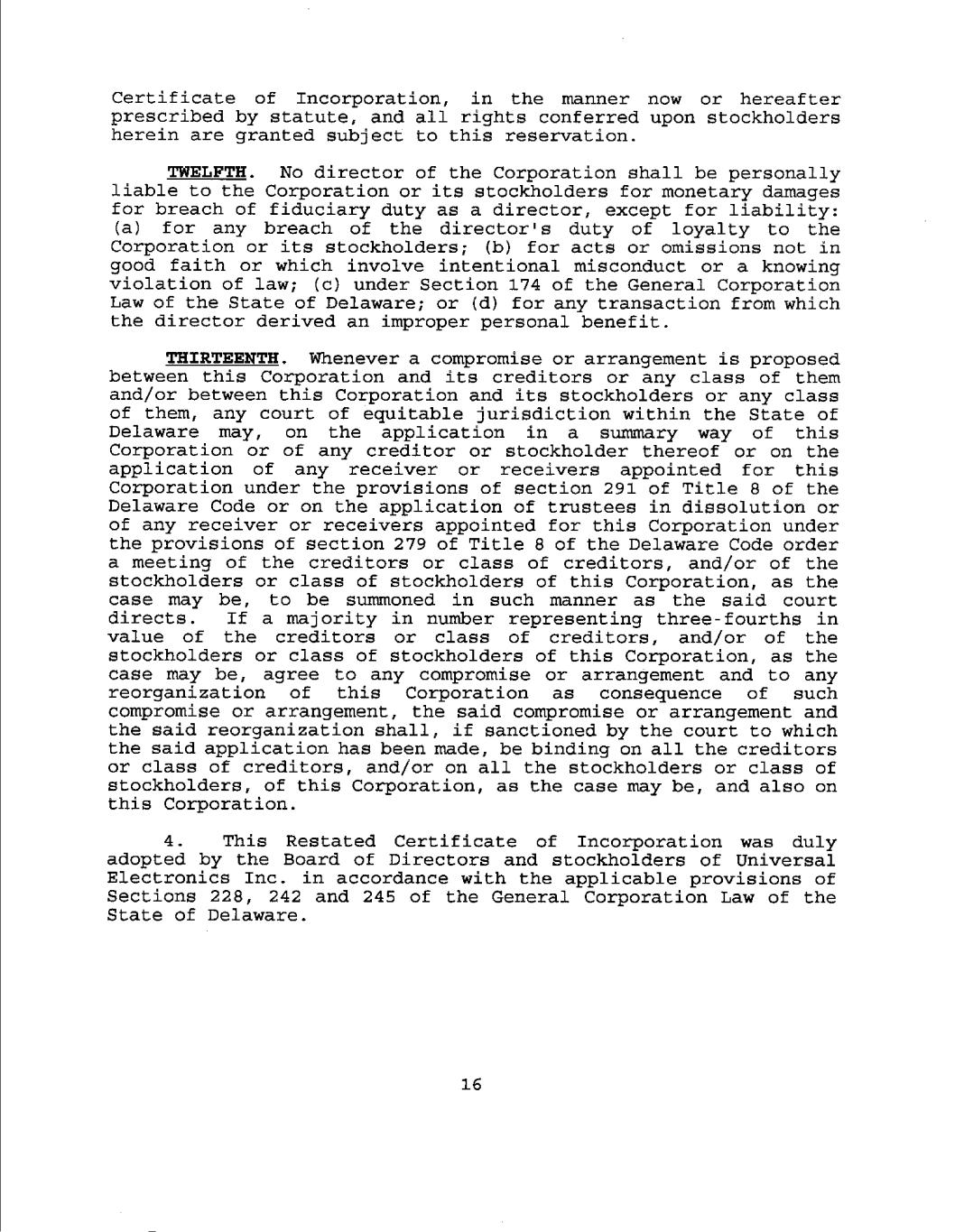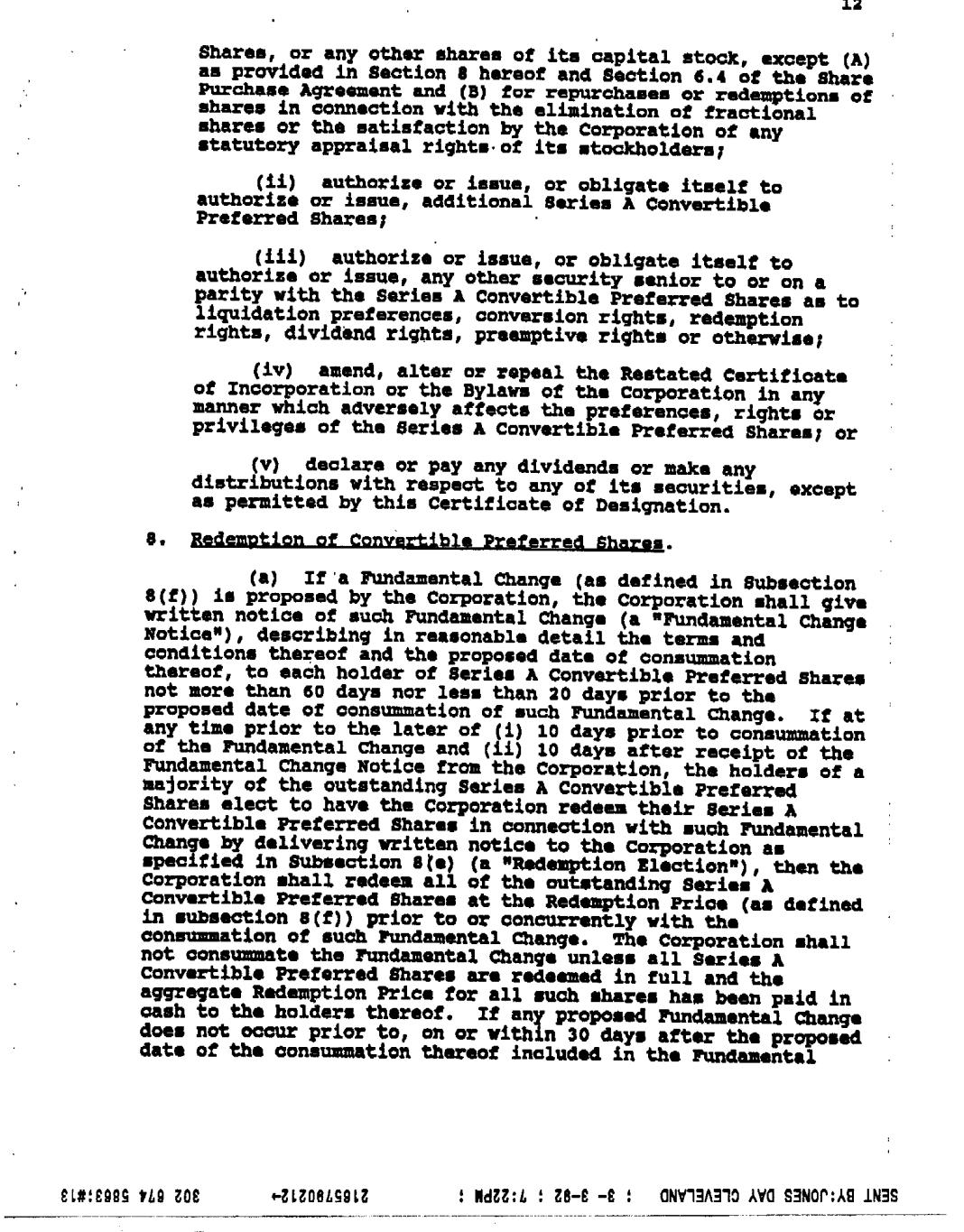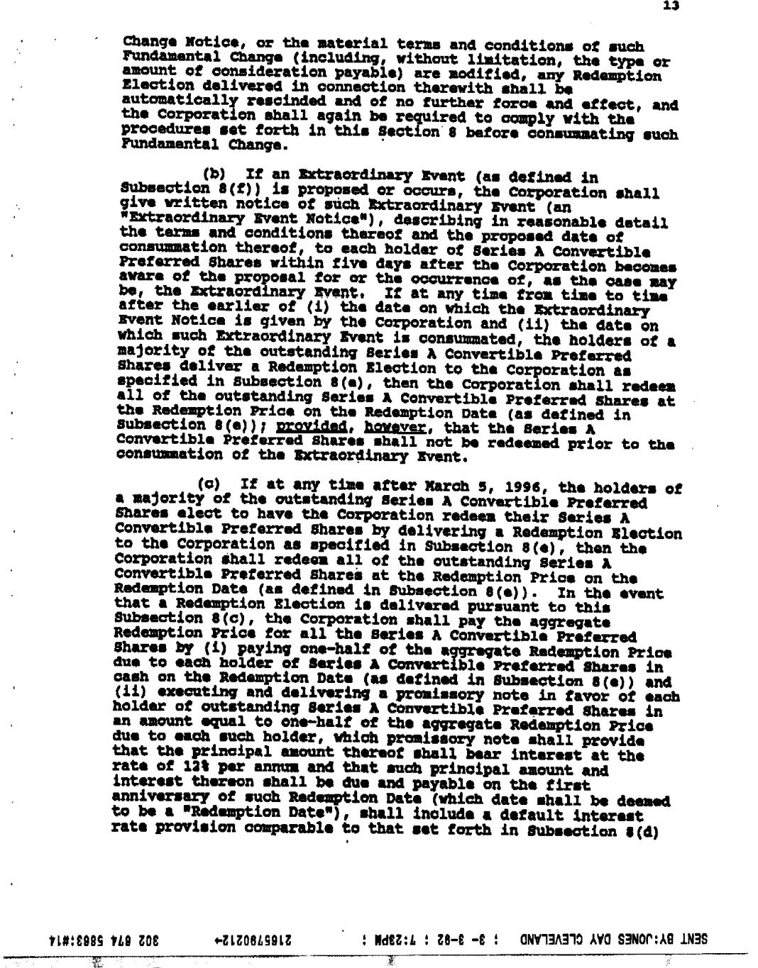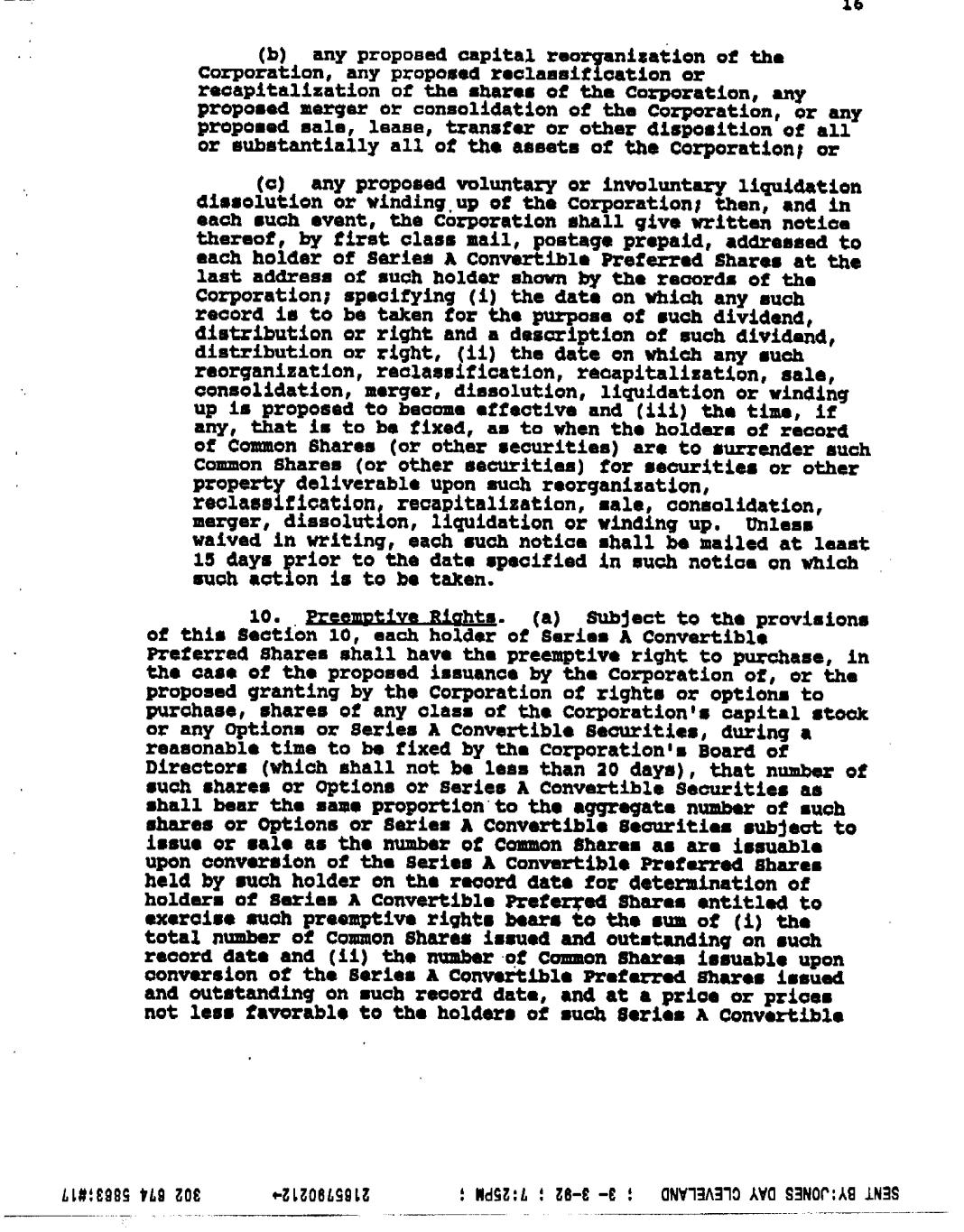 | 4.1 | Article Eighth of our Restated Certificate of Incorporation, as amended, contains certain provisions restricting business combinations with interested stockholders under certain circumstances and imposing higher voting requirements for the approval of certain transactions unless the transaction has been approved by two-thirds of the disinterested directors or fair price provisions have been met. (incorporated by reference to Exhibit 3.3 to the Company's Annual Report on Form 10-K for the year ended December 31, 1995 filed on April 1, 1996 (File No. 0-21044)) (paper file) |
